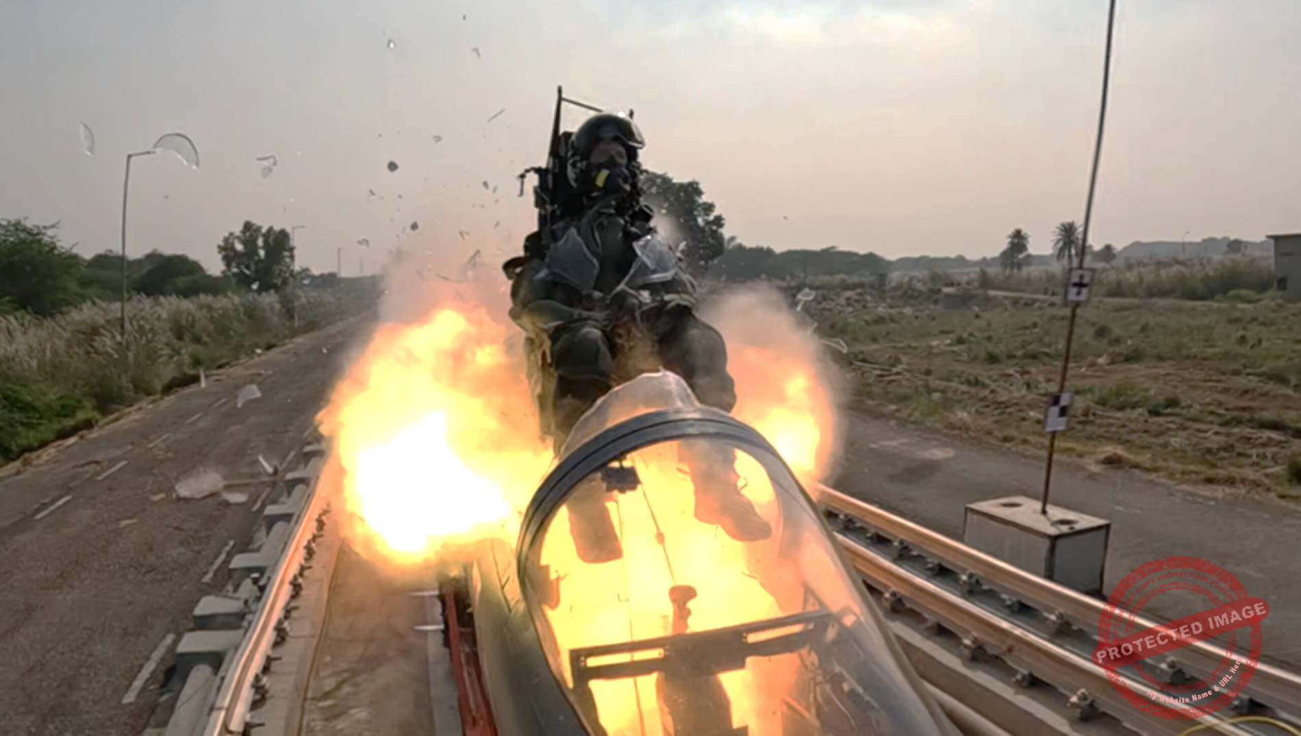 During the test, a dual-sled system integrated with the forebody of the Light Combat Aircraft (LCA) was propelled to precisely calibrated velocities through phased firing of multiple solid-propellant rocket motors. An instrumented Anthropomorphic Test Dummy (ATD) was used to simulate the pilot, capturing essential data including loads, moments and accelerations experienced during the ejection process. The entire sequence was recorded through onboard and ground-based imaging systems.
