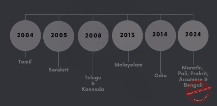 India now has 11 Classical Languages, with Marathi, Assamese, Bangla, Pali and Prakrit added to the list on October 4, 2024. Tamil was the first to be recognised in 2004, followed by Sanskrit (2005), Telugu and Kannada (2008), Malayalam (2013) and Odia (2014). The Ministry of Education is responsible for promoting and preserving these languages and ensuring they remain a part of India’s academic and cultural system.