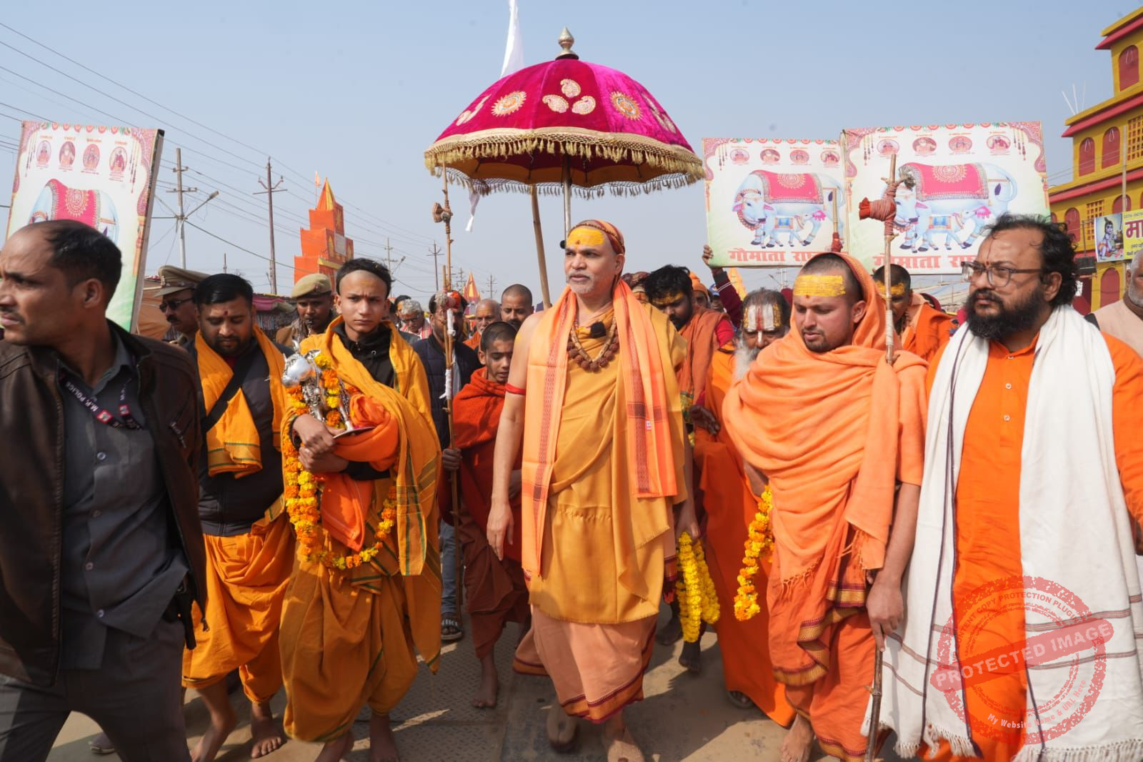 Enraged, the Shankaracharya began a dharna outside his camp and declared he would wait for the same set of senior officials to seek pardon and escort him respectfully to Sangam for the holy dip. However, the Basant Panchami snan also passed off but the officials relenting to do so.